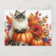 Autumn Leaves Pumpkins and Ragdoll Cat Postcard