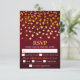 This rustic and grunge wedding rsvp card comes with a meal choice option for guests and features gold leaves on a red distressed background. The text combines italic and serif fonts for a modern and stylish look. This will be perfect for autumn fall weddings.