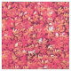 A blanket of autumn leaves in shades of red and coral orange on a deep maroon red background