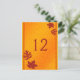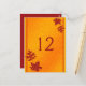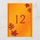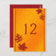 The table number on this autumn leaves wedding or special occasion table card can be changed using the personalise it option. Just change the number, set the quantity to one, add it to your cart, and repeat the process until you get all the table cards you need in your cart. For more extensive changes to the card, including changing the font, font size, font colour, or background colour, use the "customise it" option. This table card is a great option for a fall wedding, anniversary party, or any other large fall celebration you need table cards for. The colours are orange, burgundy, and harvest gold.