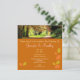 Beautiful designer Invitations for an autumn or fall Wedding. Fully customisable. Add your own details in minutes. Currently customised for a wedding, but could also be used for an engagement celebration. Gorgeous photographic image of trees in fall making a canopy over a woodland path that recedes into the distance. Images of stylised autumn leaves on front and back. Each invite comes complete with an envelope. This invitation design is also available in other colour combinations.