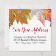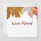 Colourful fall leaves are at the top of both sides. On front, display text says We've Moved. You can change the message.