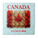 Canada's national maple leaf flag, formed from fallen Autumn leaves, on a snowy background image. Text reading, "CANADA" appears in red above the flag. Customise by adding your own additional text.
