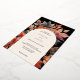 Boho-chic autumn wedding invitation featuring elegant watercolor maple leaves and floral accents in burnt orange and black. Perfect for modern rustic fall celebrations.