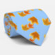 This tie features three maple leaves in glorious fall colours of yellow, gold and orange set against a sky blue background.