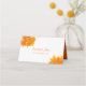 Folded place card in white and orange for an autumn wedding or fall wedding with vivid orange maple leaves. Add your names and wedding date on the back.