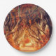 A beautiful fall illustration of maple trees weeping over a golden, sunlit trail in a forest / woods. Perfect for fall, autumn. In colours of orange, yellow, gold and brown.