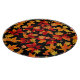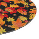 Autumn Midnight, display a vibrant pattern of autumn leaves against a black background. The leaves are a mix of bright red, orange, yellow, and gold hues, representing a variety of species like maple, oak and chestnut. `the contrast between the vivid colours of leaves and dark background creates a striking and dramatic effect, emphasizing the warm tones and intricate detail of the foliage. smaller leaves, acorns and twigs are scattered throughout, adding depth and texture to the pattern. The overall has design has an energetic and festive feel of a lively autumn night.
