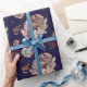 Autumn Moody Flowers Fall watercolor Blue Pattern Wrapping Paper