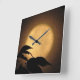 It's autumn, and a luminous golden yellow full moon has risen behind the black silhouettes of leaves blowing in the breeze on this dramatic fine art photography clock. The background is illuminated in tones of orange, gold and brown to create an abstract pattern in an Asian motif.