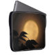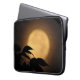 It's autumn, and a luminous golden yellow full moon has risen behind the black silhouettes of leaves blowing in the breeze on this dramatic fine art photography laptop sleeve. The background is illuminated in tones of orange, gold and brown to create an abstract pattern in an Asian motif.