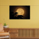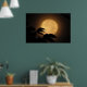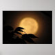 It's autumn, and a luminous golden yellow full moon has risen behind the black silhouettes of leaves blowing in the breeze on this dramatic fine art photography poster. The background is illuminated in tones of orange, gold and brown to create an abstract pattern in an Asian motif.