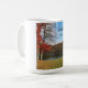 A mug with a phot of a Tennessee river in autumn with the phrase 'God believes in you"
