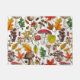 Autumn mushrooms, leaves, nuts and berries on blue doormat