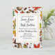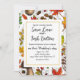 Autumn mushrooms, leaves, nuts and berries on whit invitation