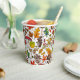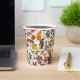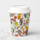 Autumn mushrooms, leaves, nuts and berries on whit paper cups