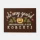 Classic and elegant doormat for fall - "oh my gourd" text with a pumpkin, vines, leaves, and your family name - pretty and colourful autumn colours of auburn brown, butternut orange, olive green, linen white, and more.