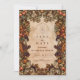 This autumn orchard–inspired design features a lush botanical frame of harvest fruits, berries, and warm rustic foliage. The rich seasonal palette paired with an antique parchment background creates a timeless, romantic atmosphere perfect for fall weddings. Detailed illustration, organic textures, and warm natural tones wrap your event details in an elegant, heirloom look. Personalize the text to craft a beautiful keepsake that captures the charm and abundance of the season.