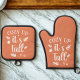 Bring the warmth of autumn into your kitchen with this fall-themed oven mitt and pot holder set! Designed in a cosy pumpkin spice orange, this charming kitchen set features the phrase “Cosy Up, It’s Fall” in a playful duo of rustic and script fonts. Accented with white leaves and a cute acorn, it adds a festive farmhouse touch to your seasonal decor. Perfect for baking pumpkin pies, hosting Thanksgiving, or simply enjoying cosy fall moments at home, this stylish and functional set is a must-have for autumn lovers.