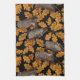 Autumn owls on black tea towel