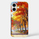 Minimalist anime phone case depicting a peaceful park pathway in autumn with golden leaves and warm light. Perfect for cosy and scenic fall lovers.