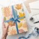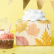 A soft, warm autumn inspired pattern filled with leaves painted in warm pastel colours.