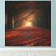Step into the warmth of fall with this tranquil art print capturing a tree-lined pathway bathed in golden light. Tall trees arch overhead, their fiery red and orange leaves forming a natural tunnel, while a carpet of fallen foliage blankets the ground. Sunlight filters through the branches, casting soft shadows and creating a peaceful, almost magical atmosphere. Perfect for seasonal decor, nature lovers, and anyone seeking a moment of calm.