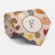 A neck tie with an autumn Pattern including maple, beech, oak and hazel leaves, mushroom, acorn, pumpkin, chestnuts and walnuts in fall colours and a Monogram Letter. A nice gift for a man who love nature and forest.