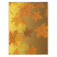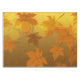 Autumn pattern with falling maple leaves and bokeh tablecloth