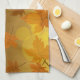 Autumn pattern with falling maple leaves and bokeh tea towel