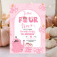 Autumn Pink Whimsical Retro Tea Girl 4th Birthday Invitation