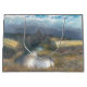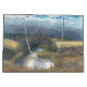watercolor on silk - manual equipment; water in the lake reflects the cold autumn sky.Artist by Zolotareva.