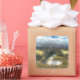 watercolor on silk - manual equipment; water in the lake reflects the cold autumn sky.Artist by Zolotareva.