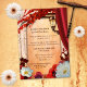 A bohemian chic wedding reception only, elope or post or after wedding invitation featuring colorful fall leaves with anemone and daisy flowers on a classic Mediterranean style painted background with a lantern.