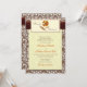 Autumn or fall pressed flower wedding invitation. This pressed flower wedding invitation features warm earthy fall colours, such as brown, taupe, beige, tan, and burnt orange with a dried flower focal point. It was inspired by classic libraries with damask wallpaper and leather bound books. Great for an autumn wedding.