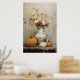 Embrace the cosy and enchanting spirit of autumn with this beautiful still life poster featuring pumpkins, white florals and a rustic pitcher. Hang it in your living room, dining area, or even in a cosy corner that could use a touch of the fall season.