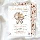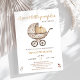 Celebrate your upcoming bundle of joy with this charming “Sweet Little Pumpkin” baby shower invitation. Featuring a soft watercolor illustration of a vintage baby carriage with a pastel pumpkin inside, this design blends rustic fall charm with modern minimalism.
