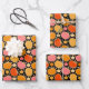 These modern pumpkin wrapping paper sheets feature pumpkins, whimsical fautumn leaf branch on an black background.