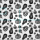 Fabric with black and white pumpkins stippling illustration.