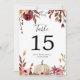 Table numbers with gorgeous flowers, leaves, and pumpkin. They can be personalised with your name, event and date.