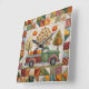 Rustic Wall Art for your Home. This Farmhouse Style Wall Clock has Historic Charm with its Old Farm Truck that is hauling Pumpkins. It's Country Chic with its Patchwork Quilt appearance. The Pumpkins are ready for Harvest, and the Trees are in their full Autumn Colours. The Quilt is Faux and Simulated.