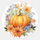 Sticker is shown in the round with a lovely fall pumpkin floral watercolor print.