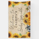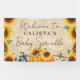 This beautiful banner features three adorable pumpkins in orange, black and white plaid, and leopard print on a burlap print. Pretty yellow sunflowers border the sides of the banner. "Welcome" in a handwritten cursive typography is featured at the top along with the mummy-to-be's name and "Baby Sprinkle" underneath.