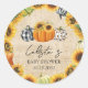 Autumn Pumpkin Sunflower Burlap Baby Shower Favour Classic Round Sticker