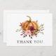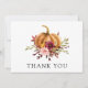 Thank your guests for celebrating! This autumn themed thank you card features a watercolor pumpkin with beautiful autumn florals. Personalise with your information or click "Click to customise further" to edit font styles, size and colours. Message on back can be personalised.