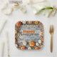 Autumn Pumpkins and Leaves on Wood Thanksgiving Paper Plate
