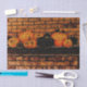 Fall orange black pumpkins on brick background. Thanksgiving art craft decoupage tissue paper. Image copyright Marg Seregelyi Photography.