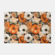 This doormat is shown with a autumn fall pumpkins and flowers print.