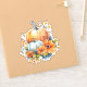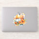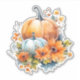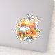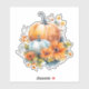 Contour sticker with a fall themed image. Orange and white pumpkins surrounded by fall leaves and orange flowers.