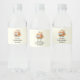 Bottle labels with a fall themed image. Orange and white pumpkins surrounded by fall leaves and orange flowers.